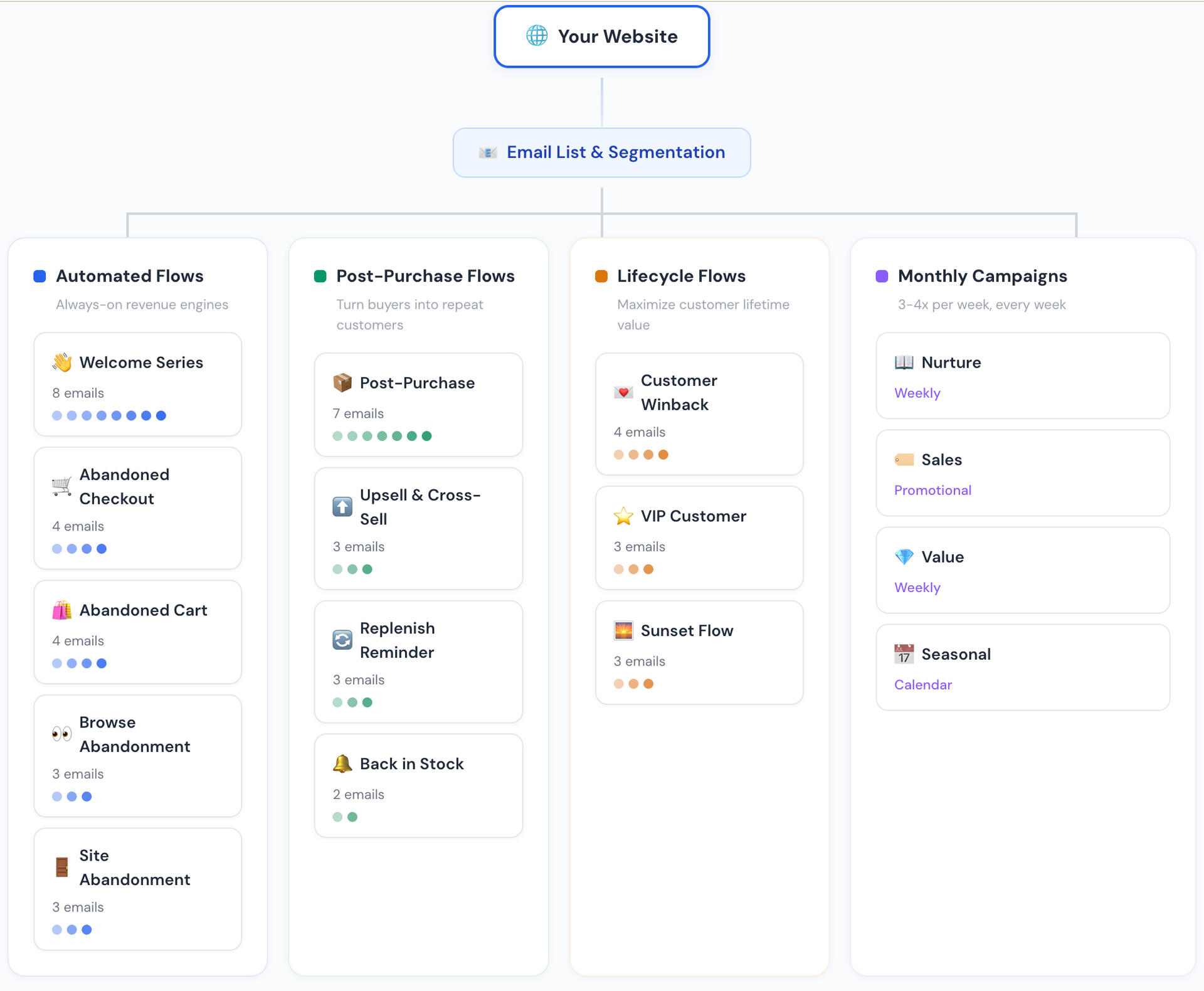 ✓ Minimum 8 automated flows with 40-60 emails total